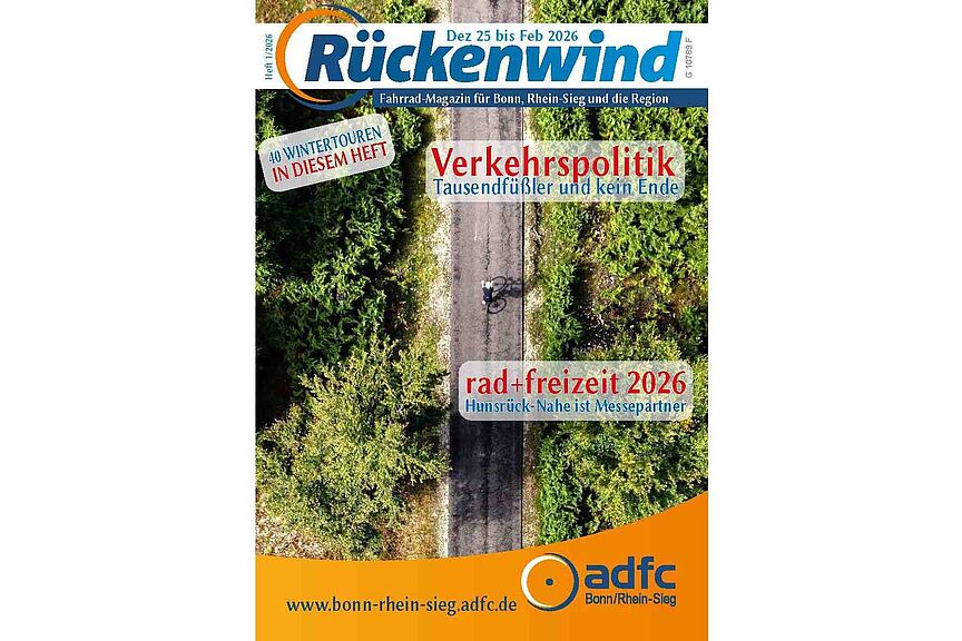 Berichtet wird im neuen Rückenwind aber über noch viel mehr Themen. So bietet der ADFC zum Beispiel in diesem Winter 40 Radtouren an. Und auch Vorträge zu Radreisen werden von ADFC-Mitgliedern gehalten, die diese erlebt und erradelt haben. Ein Besuch im Fahrradkino in Beuel lohnt immer wieder - alle Inhaltsangaben sind hier nachzulesen. Von vielen ihrer Aktionen und Events in ihre Bereichen berichten die verschiedenen Ortsgruppen.